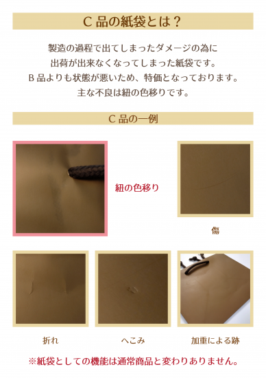 ・C品:傷や痛みに加え、紐の色移りがある商品です。